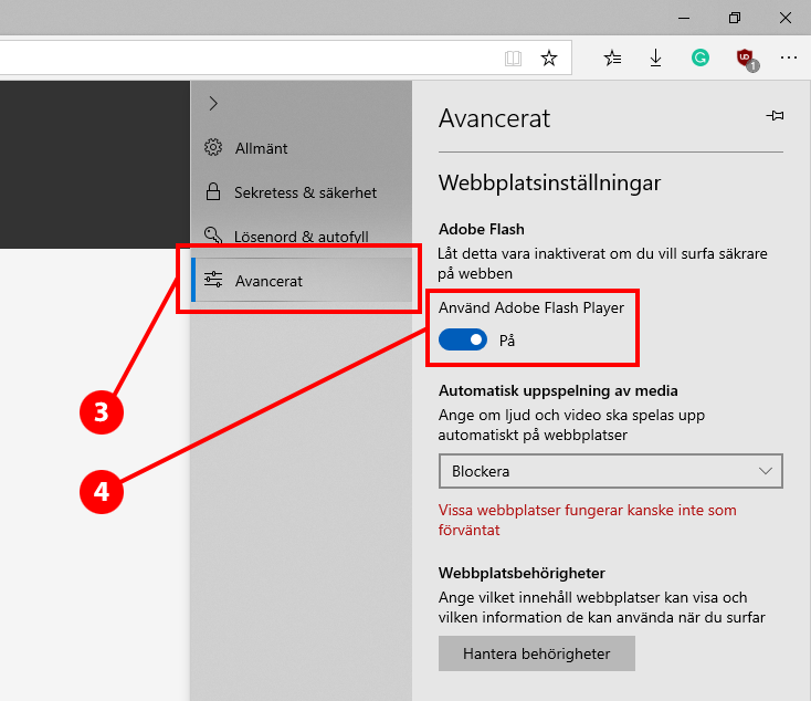 Klicka på länken ovan och följ instruktionerna på den sidan för att installera Flash om du inte redan har det.